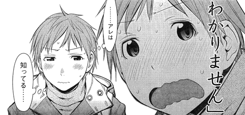 While this aspect of Hato’s character may seem odd, the story actual explains the crossdressing aspect well.  So much so, that I’d say that, instead of having a trap character around for jokes, the writer decided to do something much more progressive that leads to a much better story.  image01Due to emotional scars and a problem with identity, Hato decided to join a primarily female Genshiken group as a girl in order to better fit in until he is rather humorously found out within the first meeting.  Throughout the story, we get hints and small explanations to how this character’s psyche works and why they do all of the things that are so different from everyone else.  Amazingly in the story, the characters, aside from a few jokes here and there, are incredibly supportive of Hato, with even the most conservative of the group eventually accepting this person and recognizing him as their friend.  The cast even goes so far as to use pronouns pretty damn well when Hato is around or when they’re just talking about him to help Hato identify with which gender he’s sporting.  This was not something I expected from this series and its treatment of a situation that is usually derisively regarded absolutely surprised me.  Hato becomes the major focus from which we learn everything and because ofimage02 this, we learn more and more about Hato and the struggles of someone who enjoys living as another gender, leading to apparently interesting discussions on the Internet about the transvestism and possibly transgender aspects of this character (seriously, some people have done some extensive analysis of this).