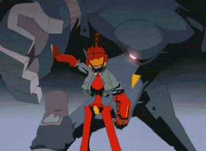 There’s also the idea that each incident with a robot is brought on by the unchecked pre-teen emotions that Naota feels. Each episode shows a negative emotion (fear, anger, jealousy, pride, etc.) as a trigger to Naota spawning another mechanical monster from his head. As his emotions cause pain and damage to Naota and the people in his life, each robot physically shows this destruction to the viewers by spawning from his brain and attacking the town and the people in it. In fact, this metaphor also coincides with how the robots are defeated. Each time a robot is fought or destroyed, Naota comes to terms with his feelings and steps closer to understanding himself.