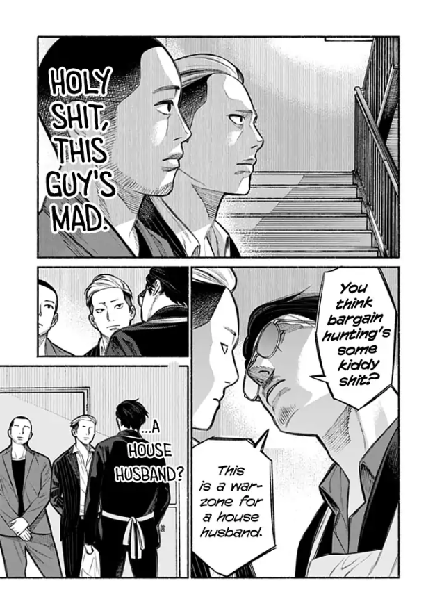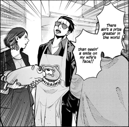 Also, I just ADORED the interactions between this man and the wife in the sparse moments we get to see them together. Rather than arguing over something ridiculous for a joke, the manga goes the extra mile in writing a relationship between two dramatically different people who surprisingly get each other at the end of the day, and it’s that hilarity that shines through and makes their marriage delightful to read.