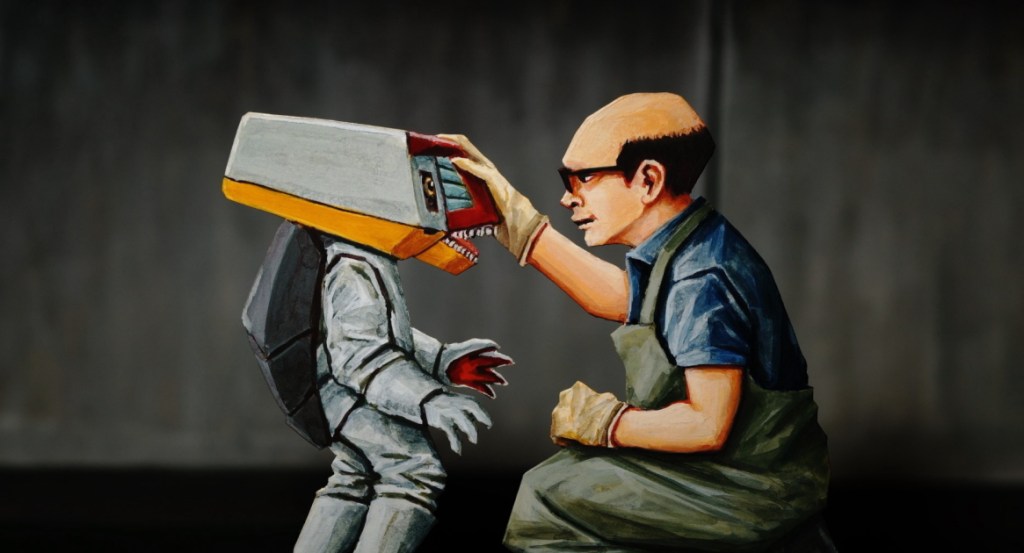 I think what maybe shines the most about Violence Voyager is its design elements as a whole. The artistic choices made in the creation of this film are fascinating – the cardboard “gekimation” style is incredibly unique, and I genuinely can’t say that I’ve ever seen anything quite like it. That, combined with the general overall art direction, gives the film a very distinct vibe that makes it stand out from any other kind of unconventional style of animation. Everything combines to result in a very uncanny, deeply unsettling tone for the film, which is honestly a pretty delightful effect under the right circumstances.